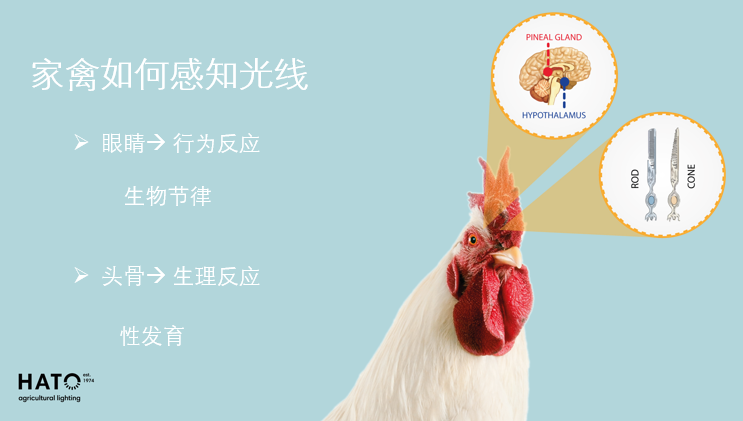 市场需求倒逼企业创新研发!数据显示,光对产蛋和青年鸡生长至关重要。家禽可以看到并反应不同范围的光色谱,且与人类的光谱强度反应不同。如人类的感光范围是400–750nm;家禽可以看到紫外光(315-400nm)。另外,鸡不仅可以通过眼睛中的视网膜锥体受体、还可以通过松果体和下丘脑腺体中额外的视网膜光感受器来感光。因此,家禽照明需要考虑八大要素:光照强度、光照周期、色温、光谱、显色指数、光分布、频闪、调光能力。