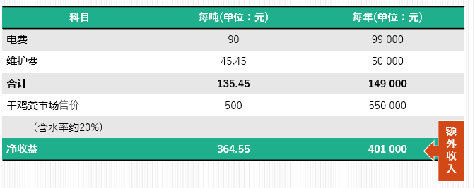 研究和实践表明,干燥后的禽粪可降低臭味、细小粉尘及病虫害,干燥后的禽粪的重量和体积均有降低,其运输成本也得以大大降低。干燥禽粪有机物含量更高,氨含量40-45公斤/吨,发酵后氨含量20公斤/吨,可作为有机肥或燃料使用。另外,鸡粪干燥处理还可以获得364.55元/吨的额外收入。