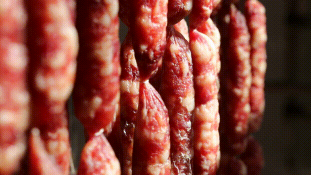 直至腊肉腊肠颜色红亮、腊香扑鼻