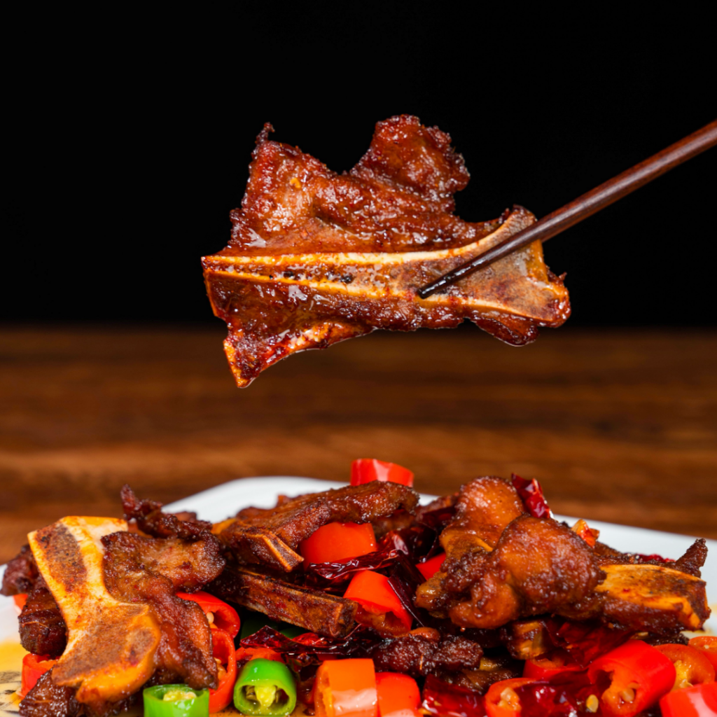 黑椒猪扒、椒盐扇子骨、酸甜扣肉
