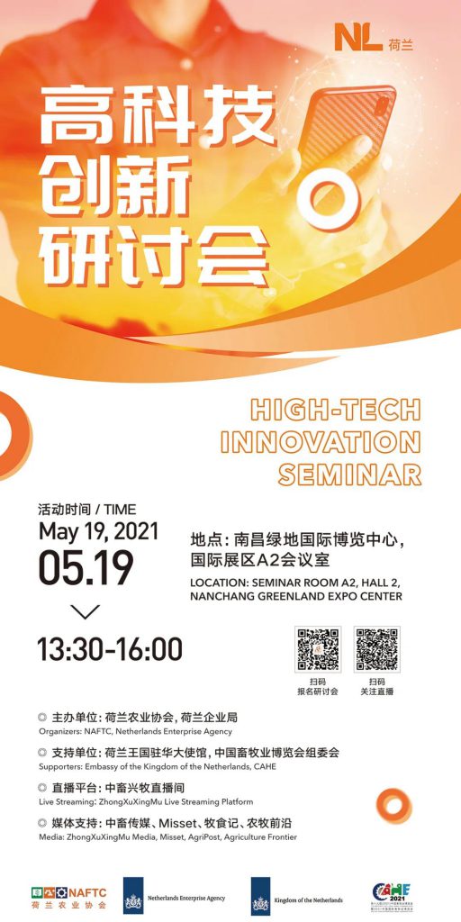 荷兰以高科技农业机械闻名,5月19日,由荷兰农业协会(NAFTC)主办的高科技创新研讨会上,五家荷兰公司将分别展示他们针对中国畜牧业提出的最出色的解决方案。我们诚挚地欢迎您前来参加。