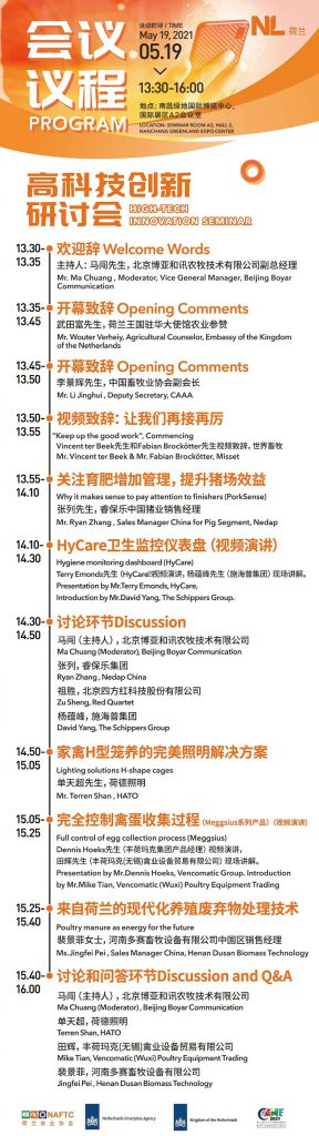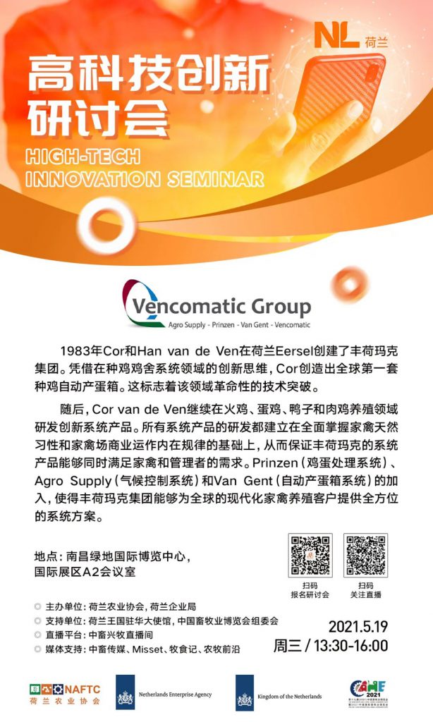 荷兰以高科技农业机械闻名,而反观我们中国现状,行业“降本增效”需求上升,科技创新更显可贵。5月19日第十九届(2021)中国畜牧业博览会上,由荷兰农业协会、荷兰企业局主办、荷兰王国驻华大使馆、中国畜牧业博览会组委会支持的高科技创新研讨会同期举行。
