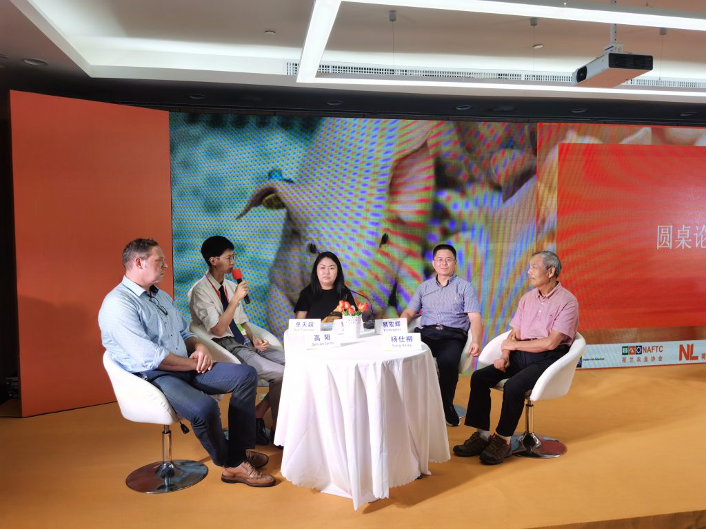 在第一轮圆桌论坛中,荷兰农业协会项目经理郭晶晶女士向荷兰绿赛集团中国区技术总监高阳先生、荷德照明客户经理单天超先生、湖南流沙河花猪牧业有限公司技术总监杨仕柳先生、湖南省畜牧水产事务中心畜牧发展部副部长易宏辉先生问到:如何重塑中国养猪业?