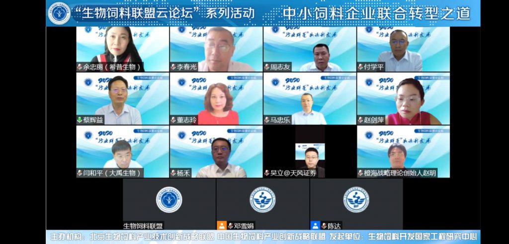 2020年7月4日,中国生物饲料产业创新战略联盟发动行业公共智慧,依托生物饲料开发国家工程研究中心及北京生物饲料产业技术创新战略联盟,联合挑战集团、九州大地集团、康普利德,主办“2020 ‘行业群星’共话新发展——生物饲料联盟云论坛”,首场论坛——中小饲料企业联合转型之道正式开幕。