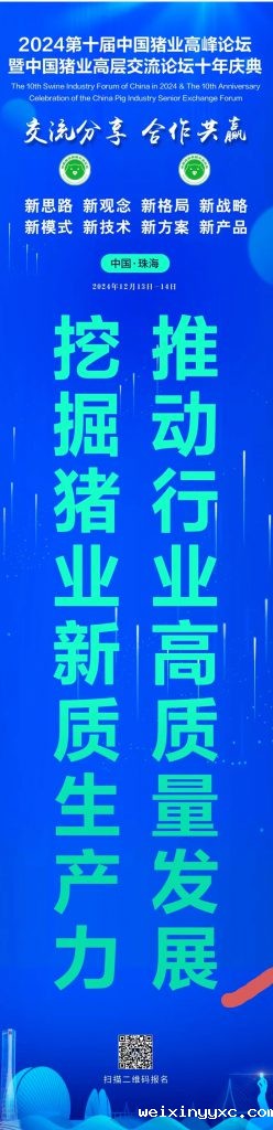 长达一年半的令人煎熬的亏损期过去了,我们迎来了可能是短暂的不到一年的盈利期。集团化养猪时代来了,养猪业微利时代来了,猪周期将越来越被熨平,盈利期将越来越短,亏损期将越来越长,养猪及其上下游企业竞争加剧、优胜劣汰加剧。未来中国猪业如何打破内卷、走出困局?大中小企业如何生存、如何稳健发展?如何以新质生产力推动行业高质量发展?2024.12.13-14·珠海·第十届中国猪业高峰论坛将为大家找到答案!