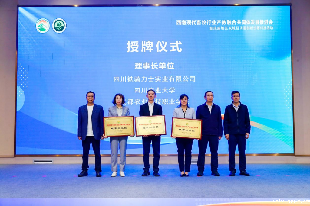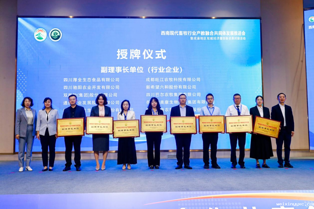 乡村振兴东风助,产教融合谱新篇。西南现代畜牧行业产教融合共同体秉持“共建、共生、共享、共担、共荣”的理念,构建现代畜牧产教供需紧密对接机制,促进产教供需高效对接;本着“产教融合、优势互补、资源共享、互惠双赢、共同发展”的原则,自觉肩负起教育强国、科技强国、人才强国的社会责任;发展推进大会的成功举办将继续搭建好政、行、校、企深度融合、互促发展平台,继续坚持以教促产、以产助教、产教融合、产学合作,深入推动教育链、产业链、供应链、人才链、价值链协同整合,形成制度供给充分、条件保障有力、产教深度融合的良好发展格局。全体参会成员也将继续携手做好地方发展的“助手”、合力做好行业发展的“推手”、共同做好企业发展的“帮手”。