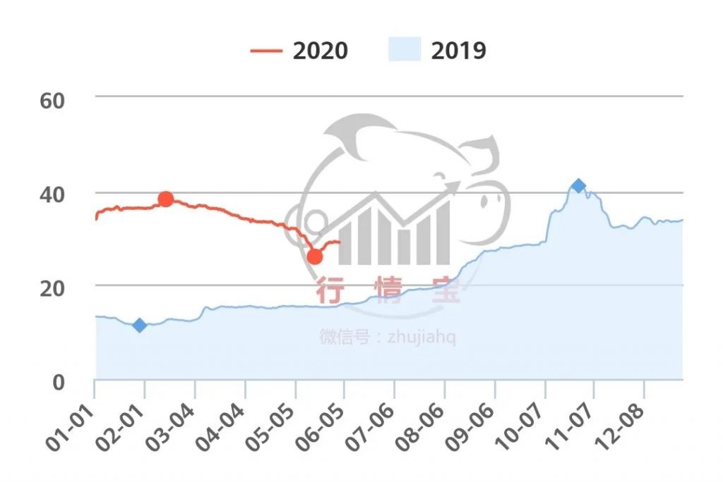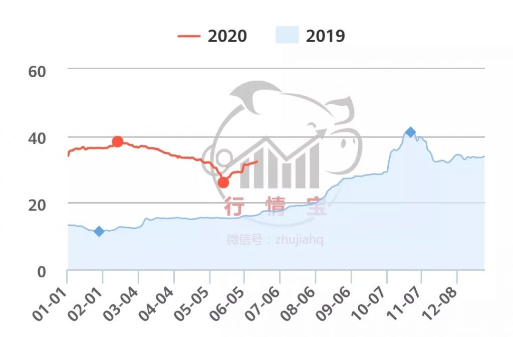 上周猪价持续小幅上调,但涨幅有限,供求博弈激烈。一是端午假期临近,为应对消费高峰,屠企将提前备货,近期生猪收购量可能增大;二是由于近期北京、广州等地突发公共卫生事件,部分消费者排斥“进口、冷冻、国外”等标签的冻品肉,生鲜品需求增大,短时白条肉走货情况好转明显,带动猪价加速上行; 三是随着公共卫生事件得到控制,终端消费也将恢复理性。
