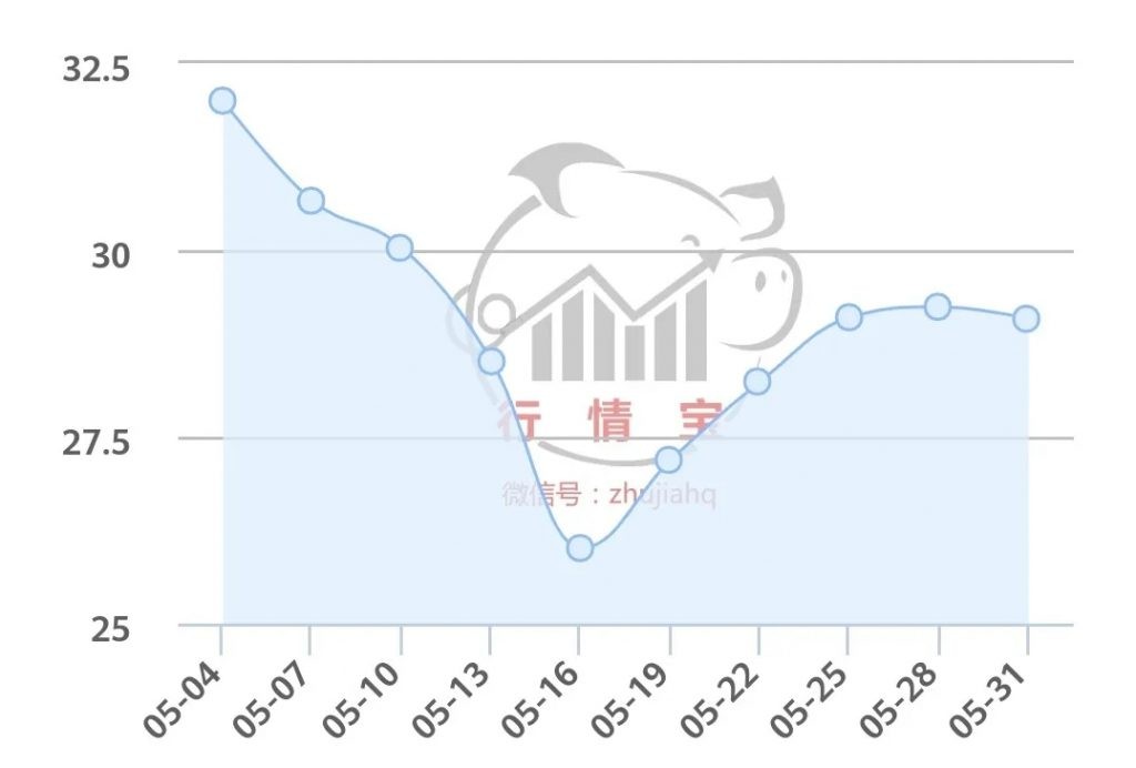 近日华东地区常有暴雨,生猪出栏速度变慢,推动猪价上涨。东北地区也因受降水天气影响,屠宰企业收猪难度提升,地方生猪价格上涨。西北地区标猪较少,整体行情走跌较困难。因上周猪价持续利好,不少养殖户看好后市,压栏惜售的情绪较浓厚,市场标猪供应紧张,预测6月猪价下跌比较困难。